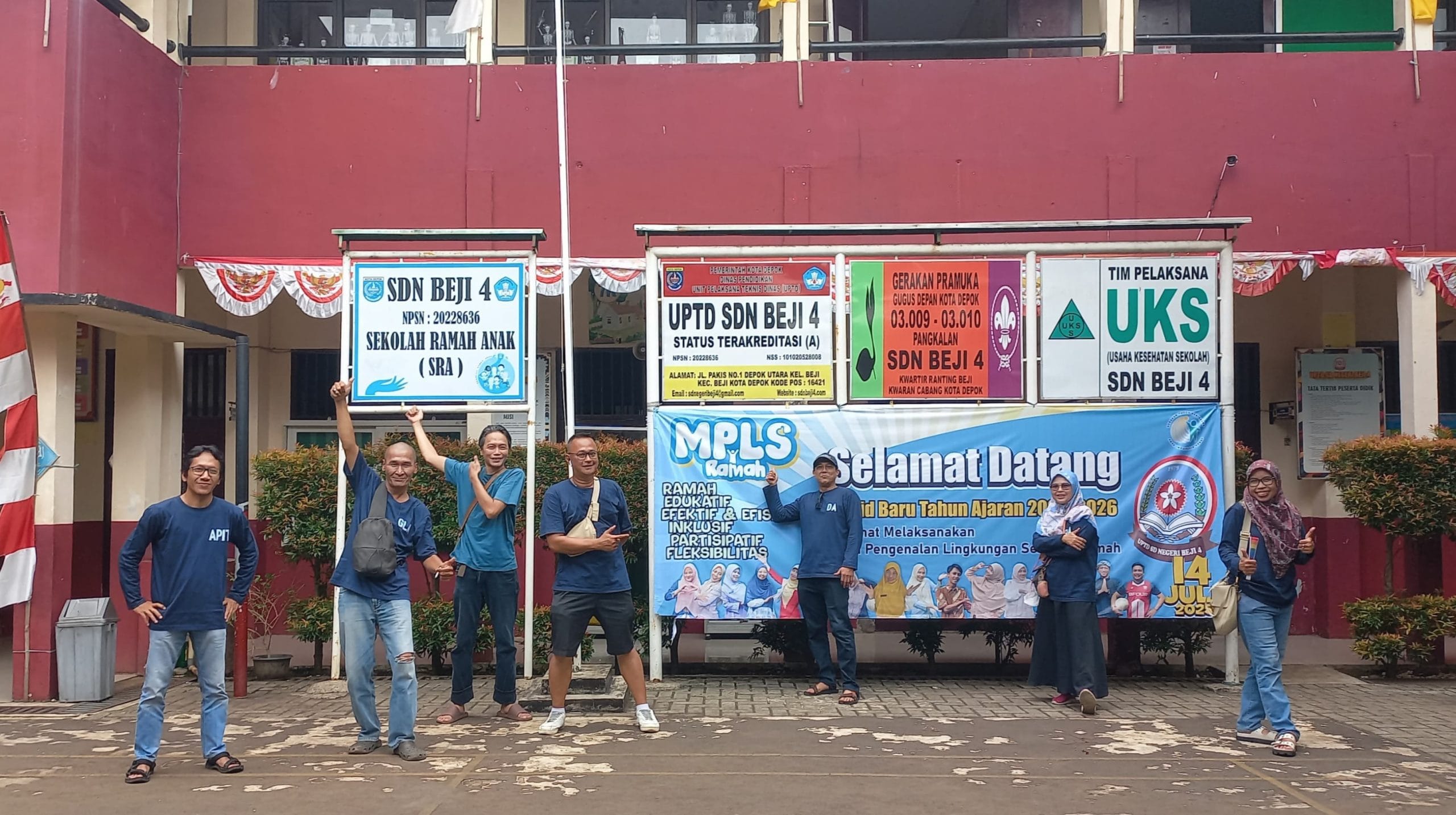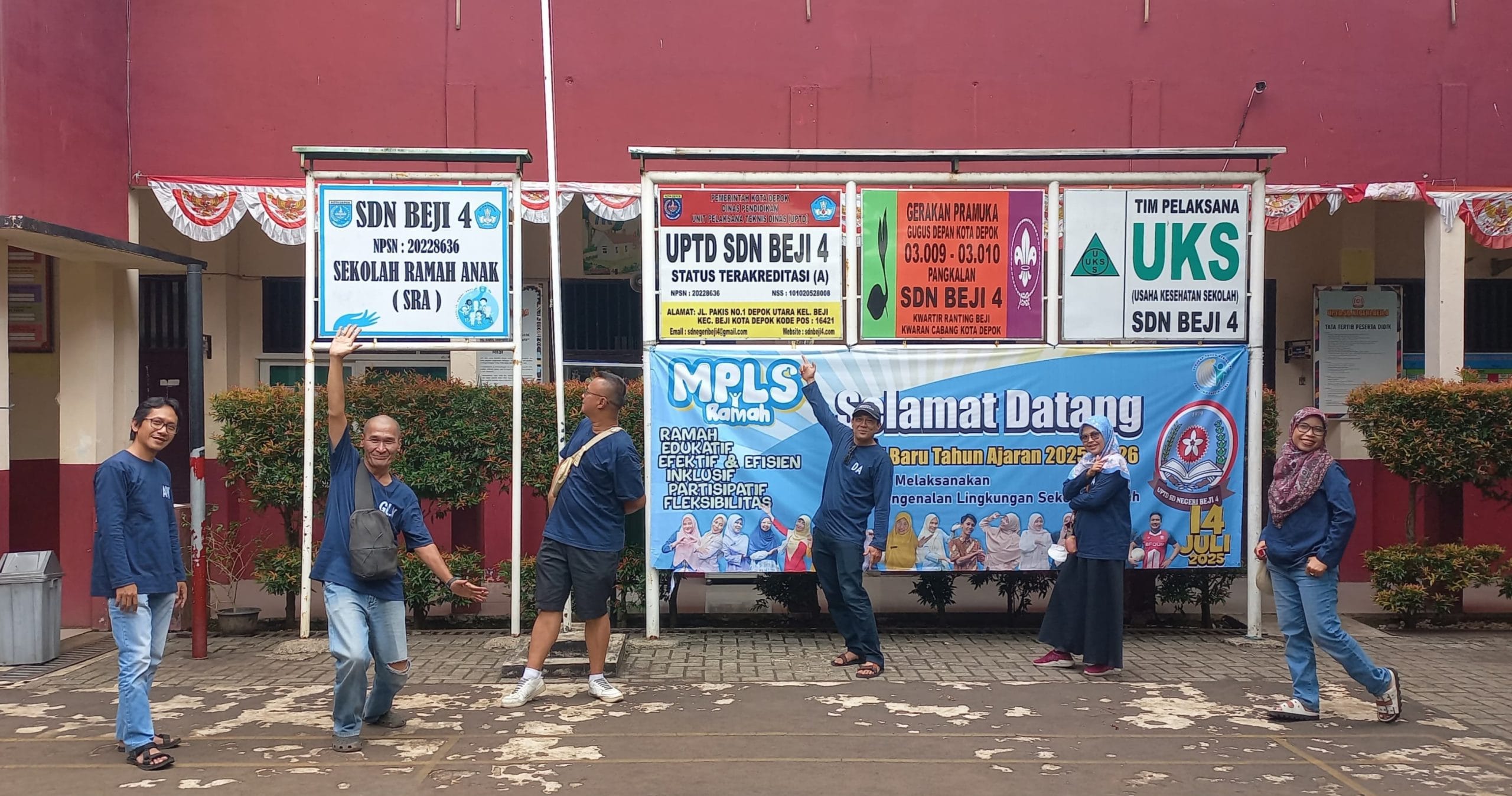 Untuk lebih mengakrabkan dengan sekolah, para alumni SDN Beji 4 ini berjalan ke sekolah yang hanya berjarak 100 meter dari warung tempat mereka nongkrong. Mereka berfoto-foto, ekspresikan diri dan bergaya masing masing.